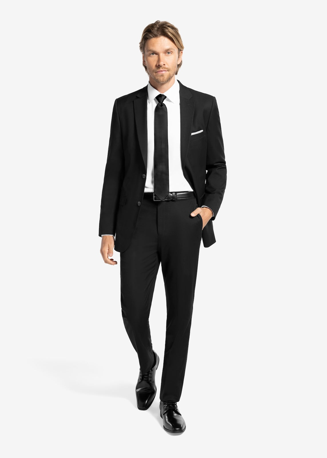 The black color goes with any suit jacket, making it a great choice for events all year round, from winter parties to summer celebrations. Designed with a sleek fit that looks good on everyone, these pants bring the same polished style you see at big events and in movies.
