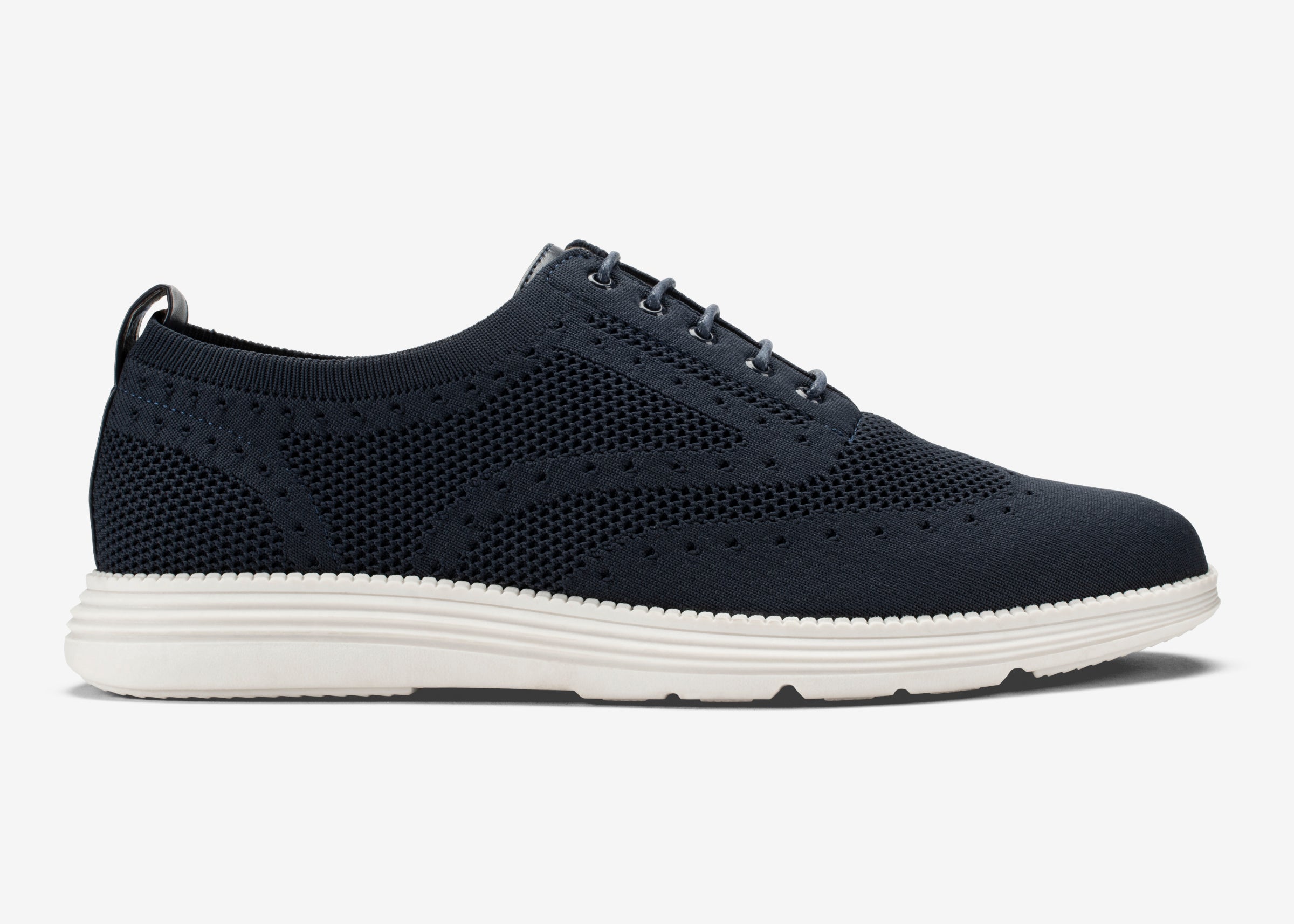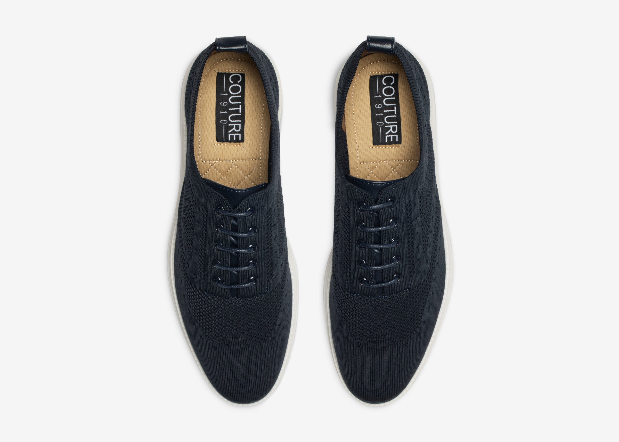 The innovative stretch knit material adapts to your foot while maintaining a sleek silhouette, and the navy hue pairs beautifully with blue, gray, and black suits for a coordinated formal look. Whether you're dancing at a spring garden reception or attending a coastal celebration, these shoes deliver the perfect balance of elegance and comfort with their unique laced slip-on design.