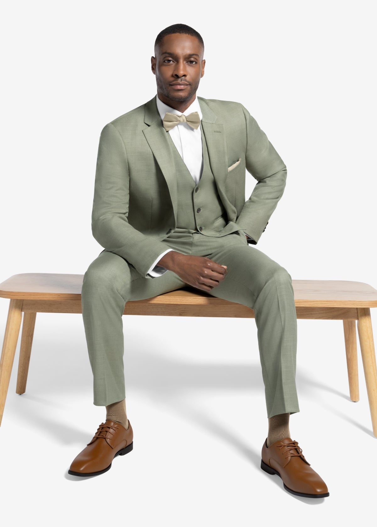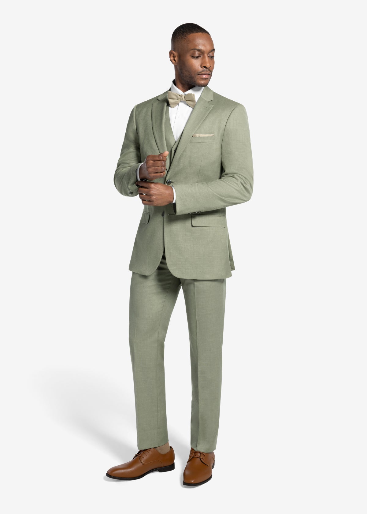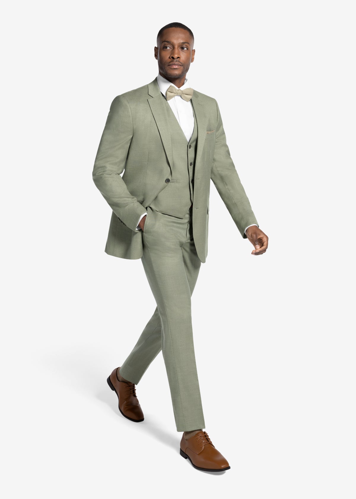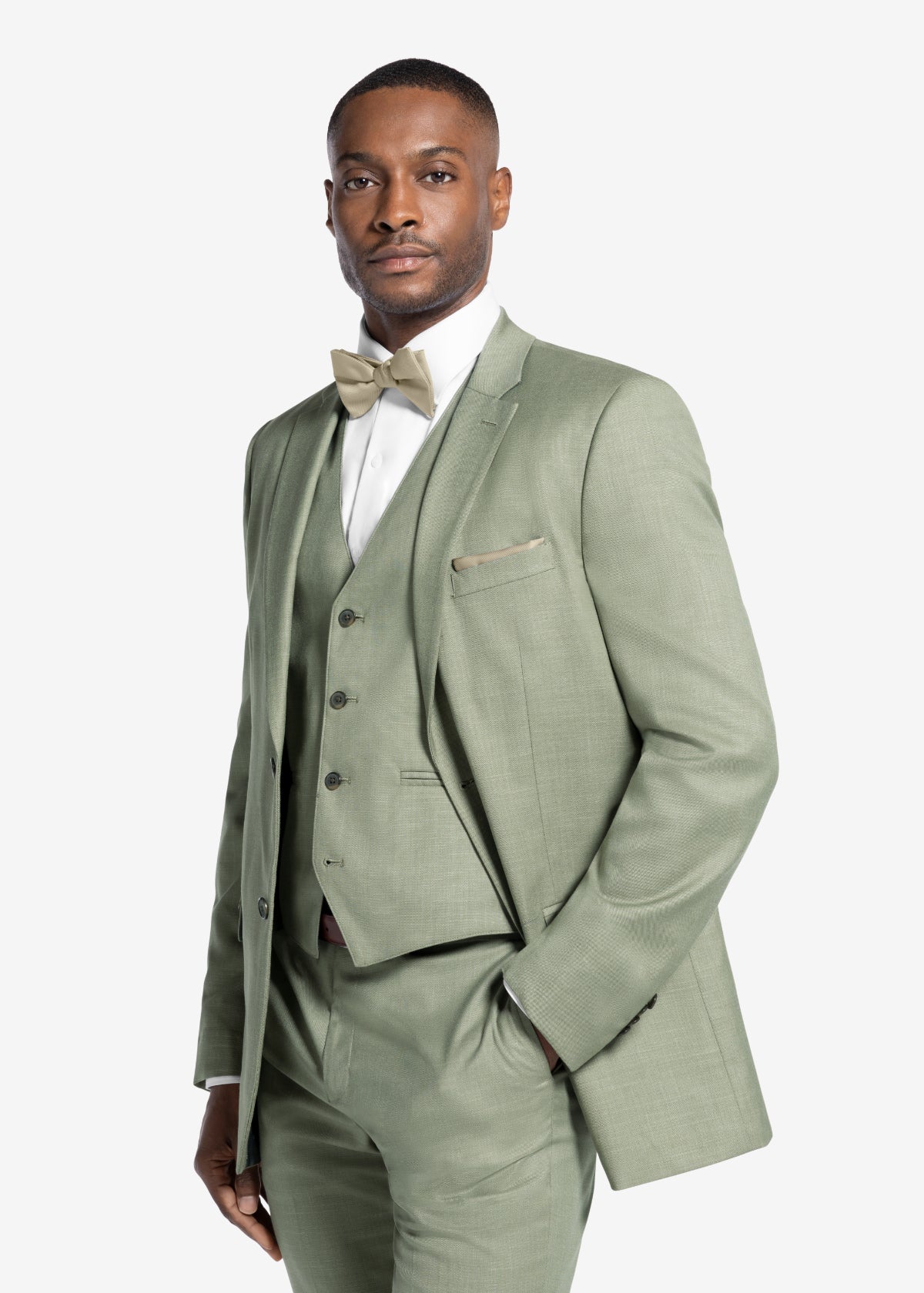 The Celadon Green Suit is a light green shade with hints of gray and jade. Featuring a slim notch lapel, this jacket radiates elegance with every step you take.