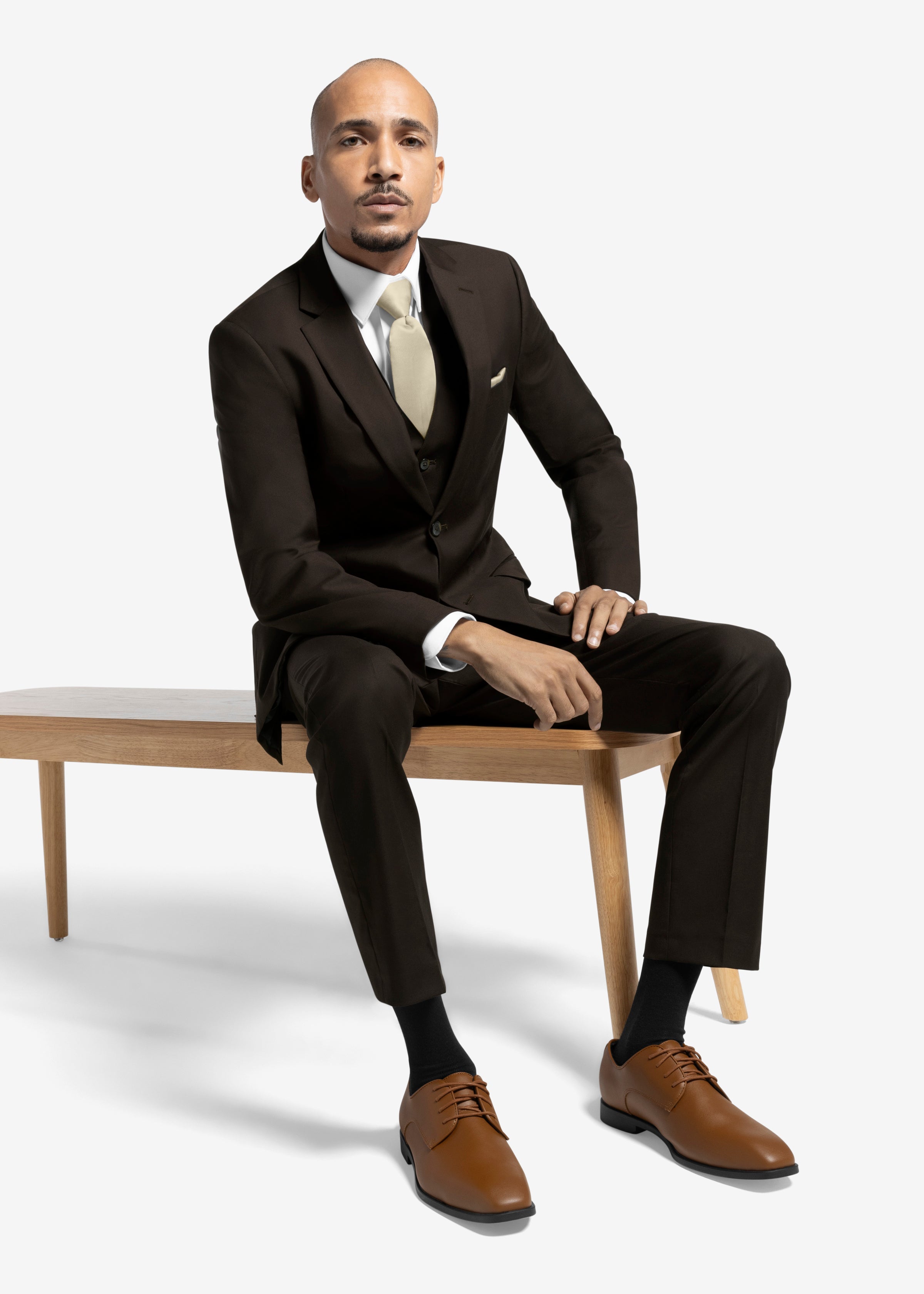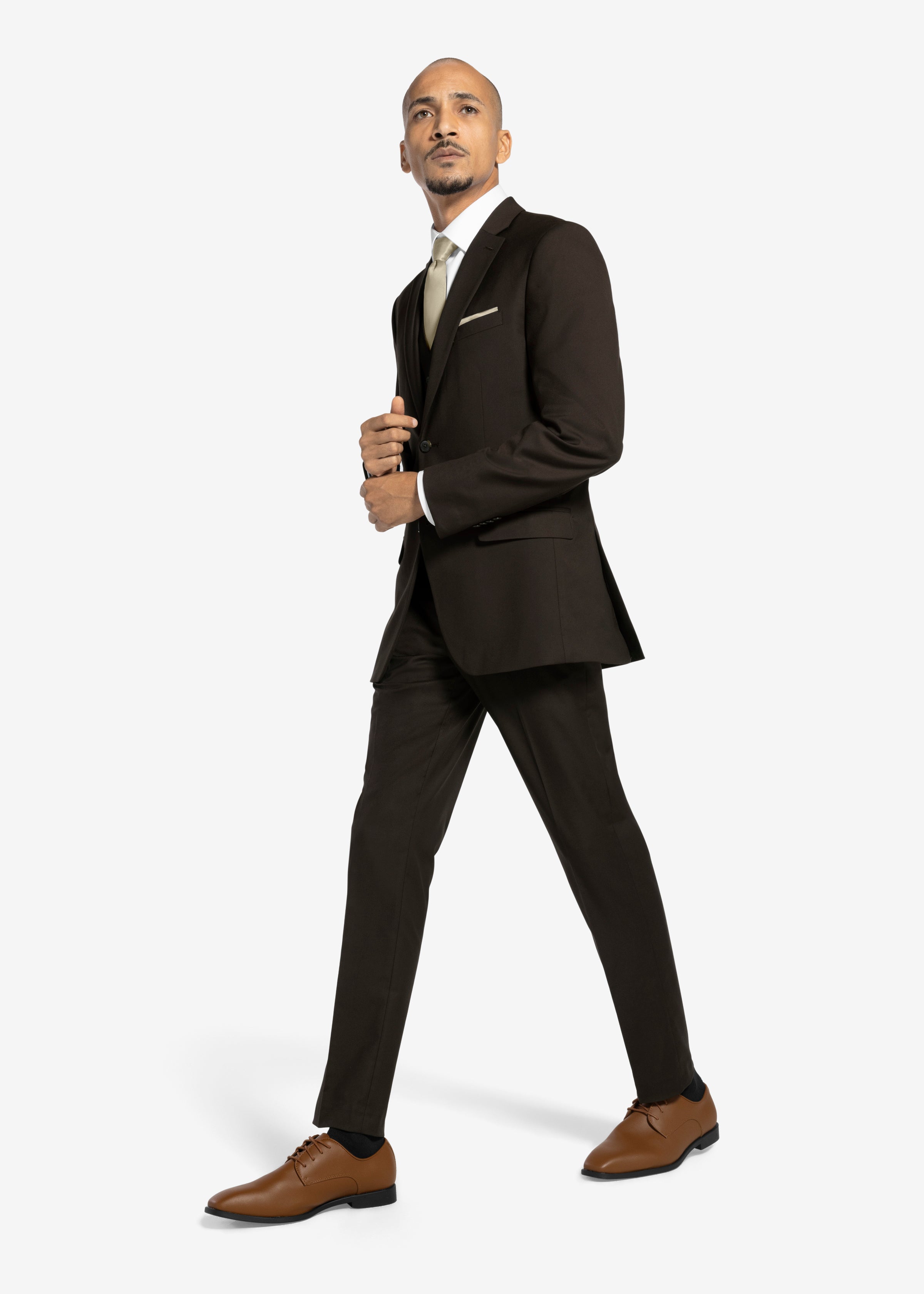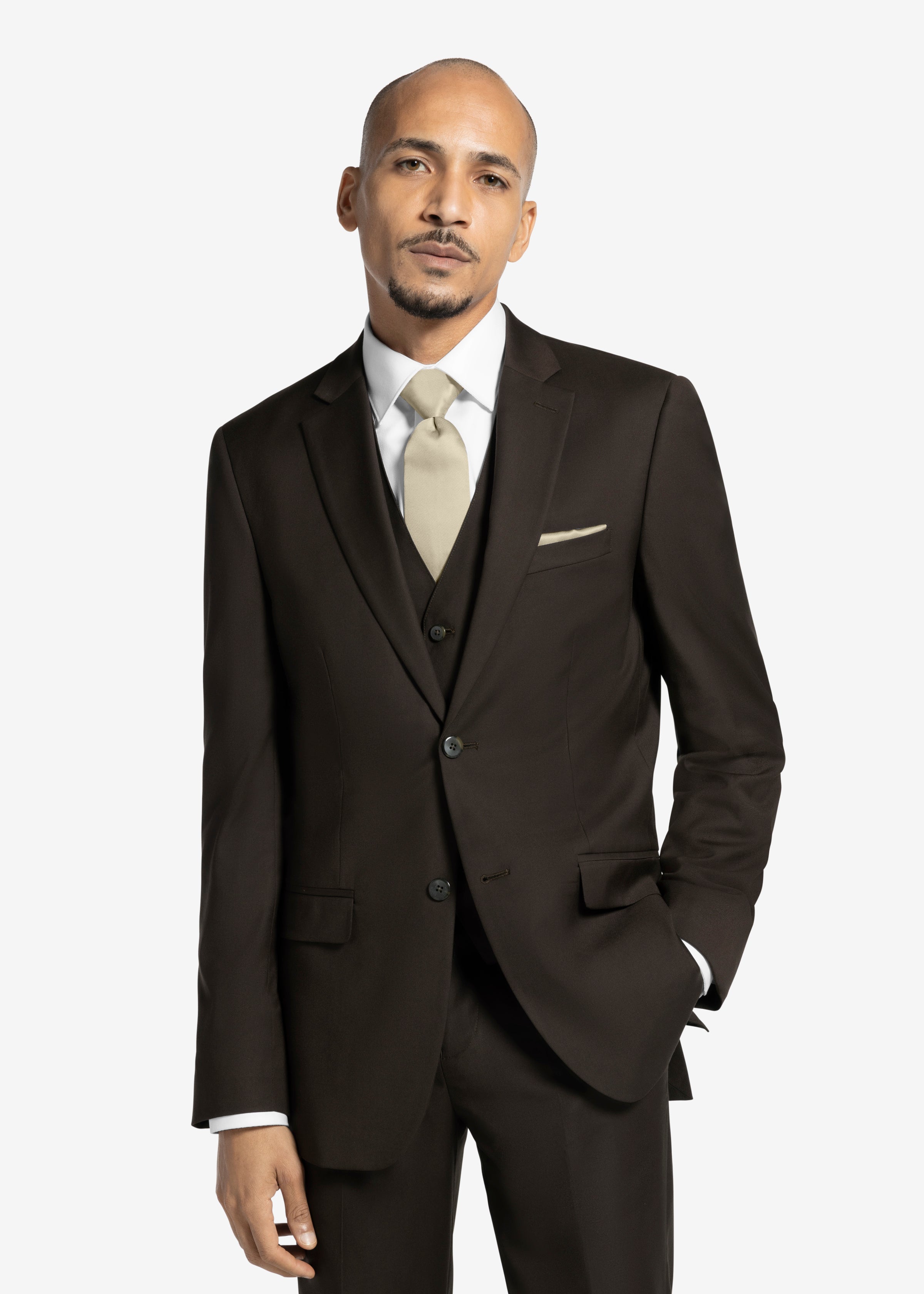 Introducing the sophisticated Chocolate Brown Suit Jacket. This earth-tone suit is a favorite among our customers, perfect for those seeking a serious look, especially for formal events like weddings.