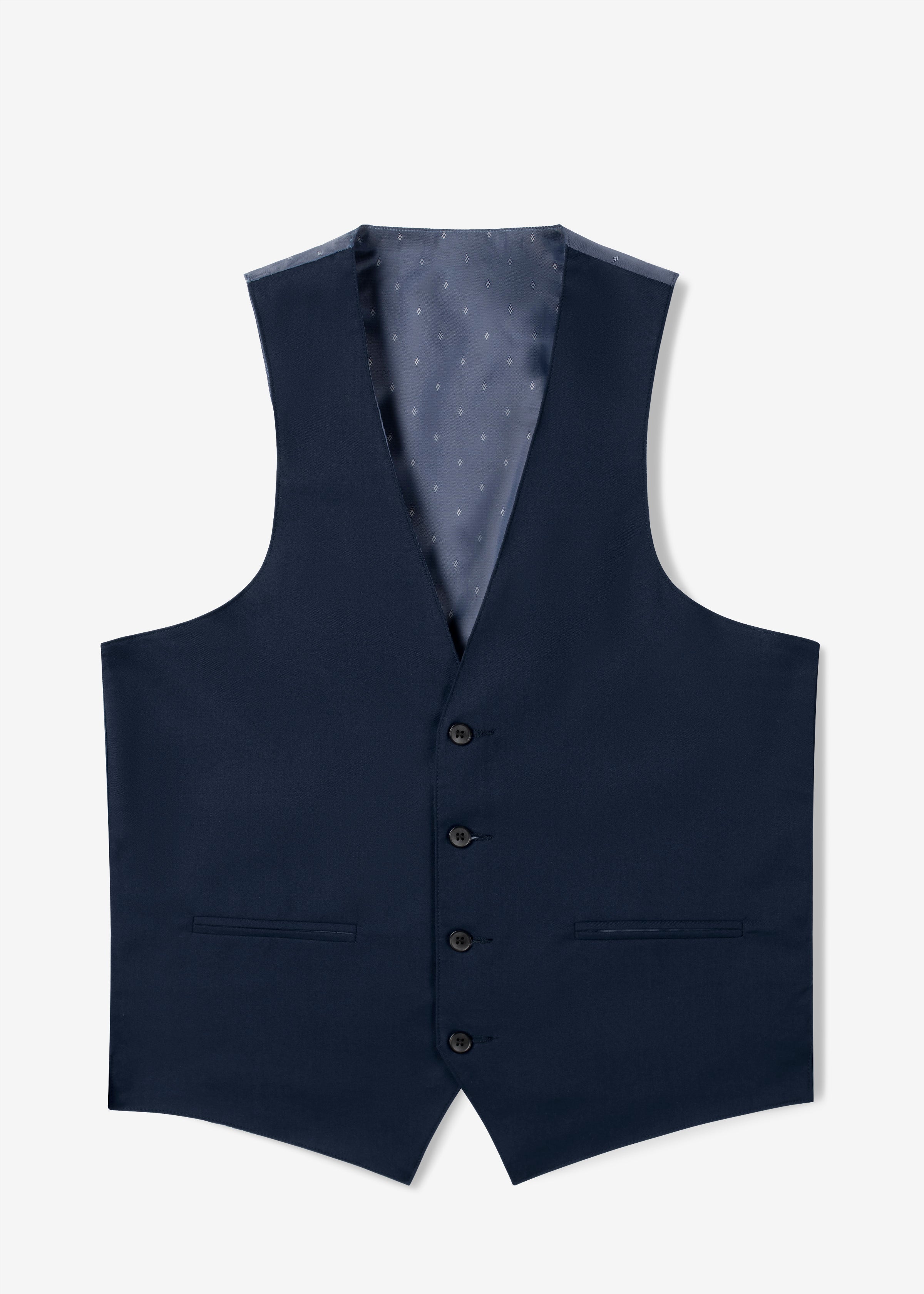 Make a polished statement in our Navy Suit Vest, an essential piece for formal occasions from Summer weddings to black-tie galas. This rich navy blue vest features a refined five-button front, adjustable back strap, and premium wool blend fabric that keeps you looking sharp and feeling comfortable.